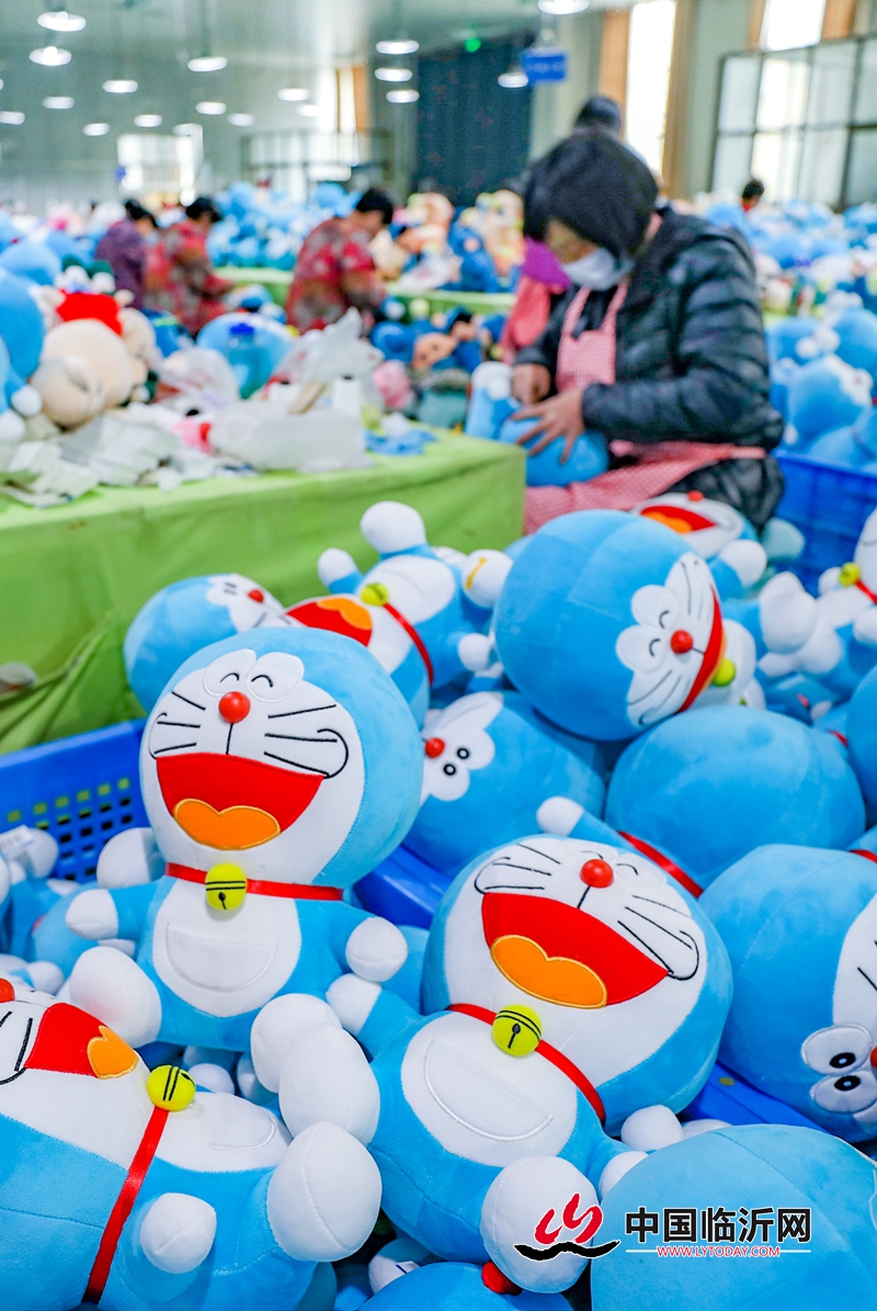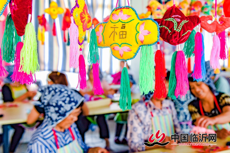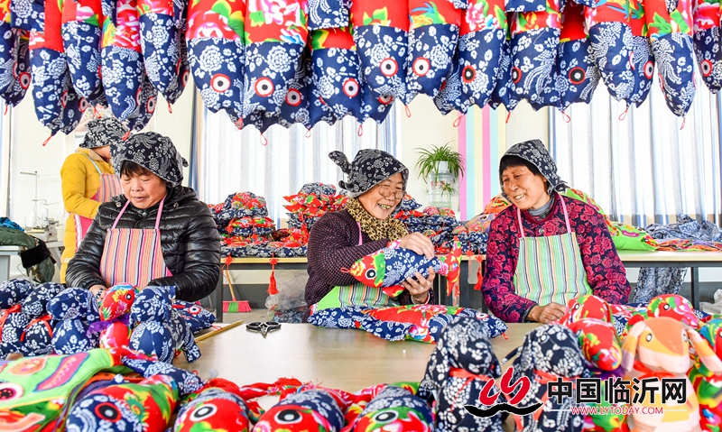 沂南县青驼镇双桥村扶贫车间农民在加工玩具
