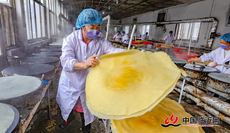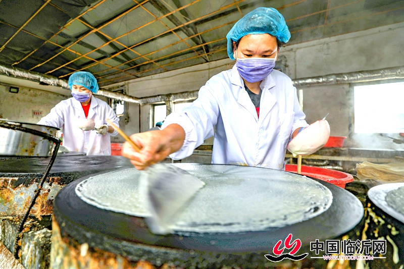 离刘世玲工厂几十公里外,沂南县双堠镇佛住村的一个扶贫车间成了俨然成了村集体增收、贫困户脱贫的“王炸”。走进车间,三排120个煎饼鏊子整齐排列,30余位身穿白色工作服、头戴一次性卫生帽子的大嫂有序的忙着手中的活儿。