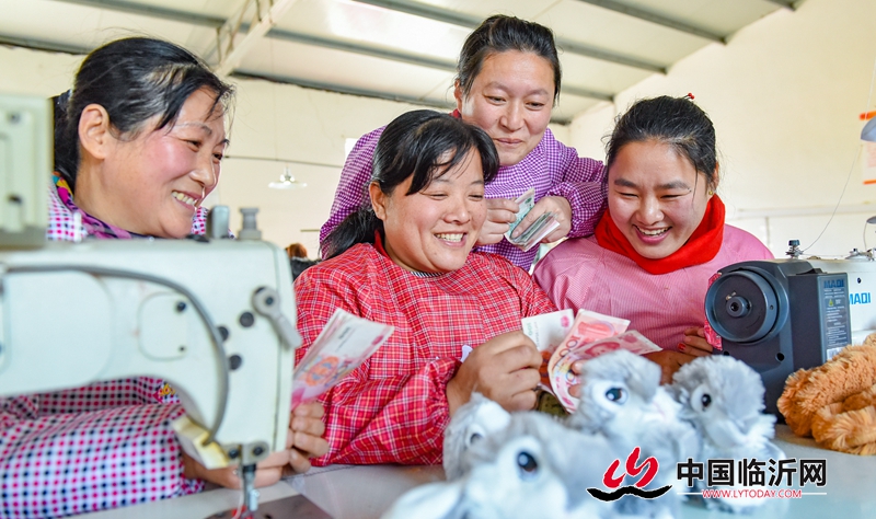 沂南县砖埠镇桃源村扶贫车间妇女喜领工资