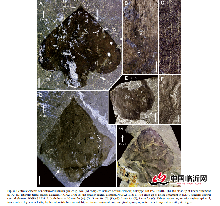 线纹心虾的头壳化石及细节图。9月1日,新华社刊发一条重磅新闻,中国科学院南京地质古生物研究所专家最近在临沂发现一种约5亿年前的原始节肢动物:线纹心虾。这种线纹心虾是寒武纪明星动物奇虾的一种,是当时远古海洋中顶级掠食动物,线纹心虾是一种全新的奇虾类化石。临报融媒记者获悉,临沂大学地质古生物研究所兼职教授唐永刚率先发现并和权威专家共同研究13年才揭开了这些奇异远古生物的神秘世界。临报融媒记者 朱武涛1 2 3 4 5 6 责任编辑:梁子硕