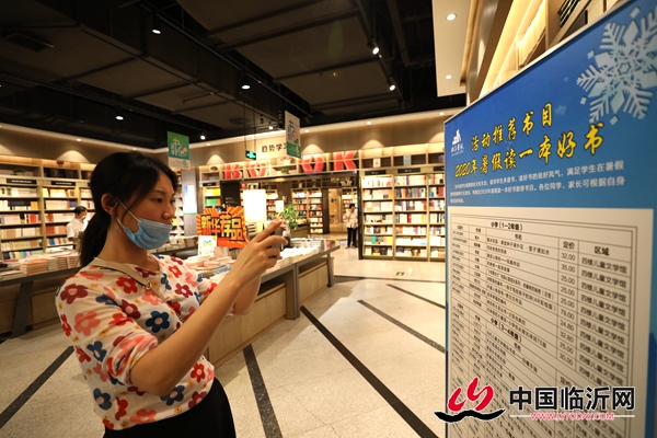 读者在临沂书城用手机拍摄2020年暑假读一本好书活动推荐书目。