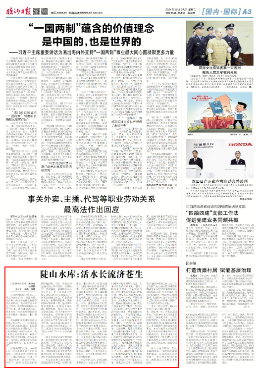 水是农业和工业的血液。该县加强科学调度,根据用水需求、来水情况和水库蓄水能力,制定科学合理的调度方案;优化水资源配置,保障城乡居民生活用水、农业灌溉和工业生产用水的合理需求。加强水资源监测与评估,建立完善的水资源监测系统,对水位、水质、流量等指标实时监测;定期对水库水资源进行评估,了解水资源的变化趋势和质量状况。2024年以来,农业灌溉累计调蓄水2000多万立方米,可促每亩粮食增产300公斤,年增经济效益6600万元;调度水量500万立方米保障临港不锈钢基地产业用水需求,支持主导产业做大做强,有效推动重点用水行业、企业实施有节水效果的工业技改项目149个;水系连通工程为鸡龙河湿地生态补水约2100万立方米,通过科学合理蓄水管水调水用水,在保障城乡居民基本民生需求基础上,合理调配水源,服务农业灌溉、工业用水及生态补水,全力支持县域经济社会高质量发展。