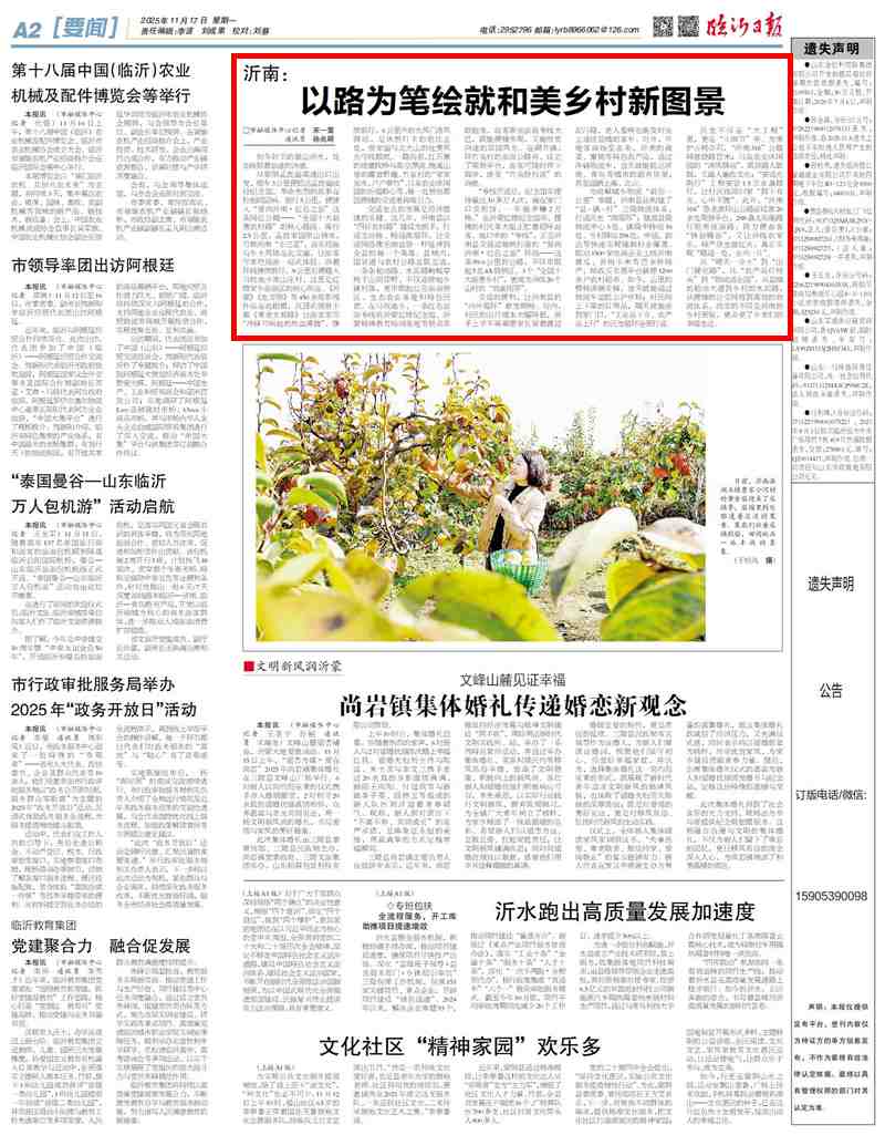 从“晴天一身土”到“出门硬化路”,从“农产品烂枝头”到“物流通全国”,从县城的柏油大道到乡村的水泥路,从便捷的公交网络到高效的物流体系,改变的不仅是沂南的乡村面貌,更点亮了乡亲们的幸福生活。