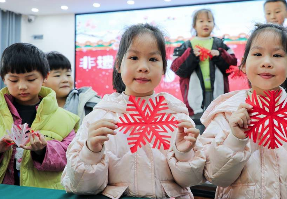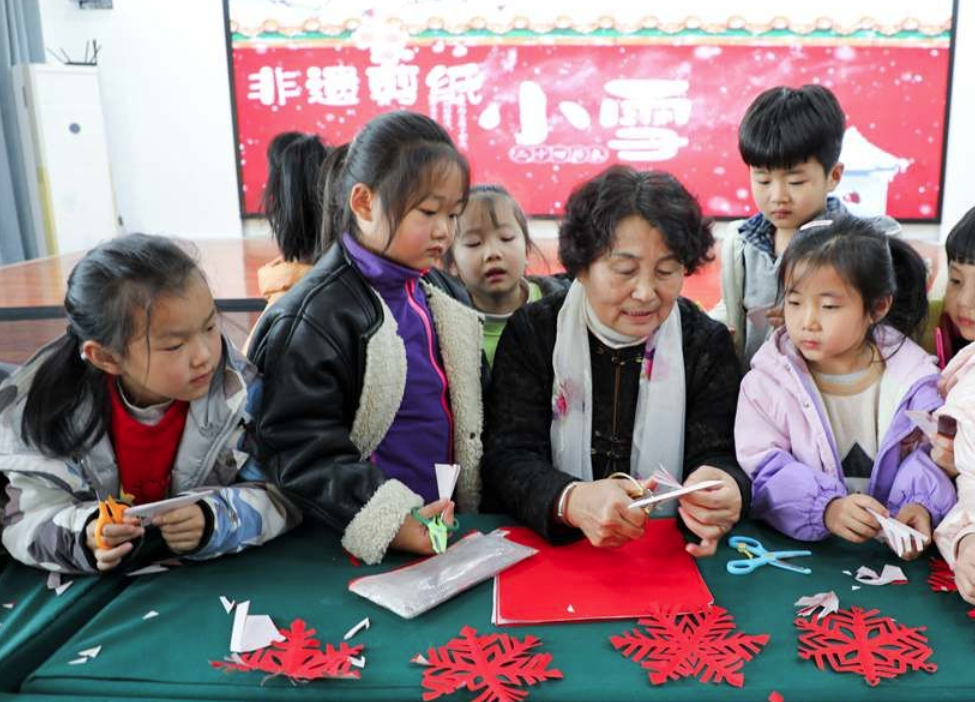 中国临沂网讯 11月19日,沂河新区白沙埠镇中心幼儿园的小朋友在当地民间剪纸艺人孙文红的指导下学习“雪花”剪纸。当日,临沂市传统文化传习驿站朱潘社区站走进该幼儿园,开展“剪雪花,迎小雪”手工活动,讲解窗花剪纸艺术技巧及小雪节气的由来,让孩子们感悟传统文化的魅力。市融媒体中心记者 廖杰 通讯员 王伟勋 摄编辑:王璐