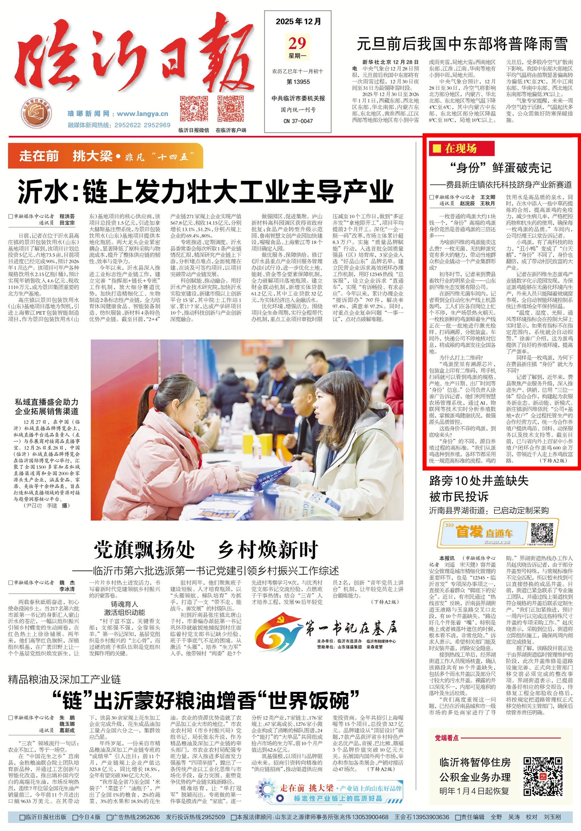 “新庄镇通过不断‘强龙头、补链条、兴业态、树品牌’,推动特色农业培育、精深加工发展、合作社壮大同步进行,形成了生态养殖、饲料加工、品牌化蛋品销售、供应链金融的全产业链,实现群众受益、集体增收的高质量发展。”新庄镇党委书记李秀祯说。