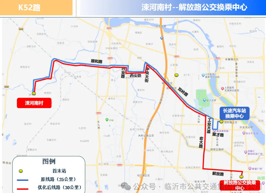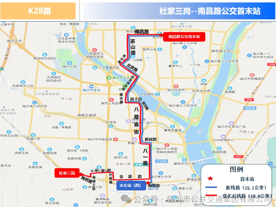 增加停靠站点9处:杜家三岗、七里沟社区南、临沂朴园小学(温凉河路校区)、夏家村、拉菲公馆北门、临沂一中北校区北门、岳家坞(单边)、市工人文化宫(单边)、临沂奥体公园。