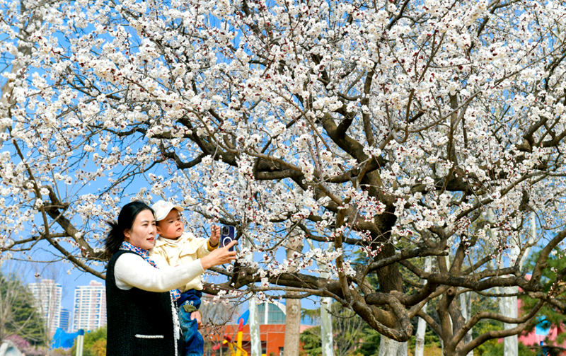 临沂:春花盛开醉游人在临沂市雕塑公园,游客在盛开的春花下赏花拍照