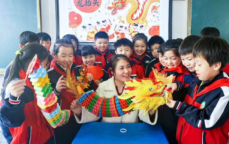 临沂:“二月二,龙抬头” 传统文化进校园在临沂白沙埠中心小学东校区,老师正在给学生讲述“龙抬头”传统文化知识