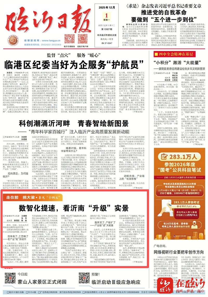 “传统产业的价值在‘老’,出路在‘新’。以高端化、智能化、绿色化为方向,目前,沂南已创建省数字经济‘晨星工厂’26家、两化融合贯标企业15家、基础级智能工厂6家,传统产业加速转型升级。”沂南县工信局党组书记、局长许彬说。